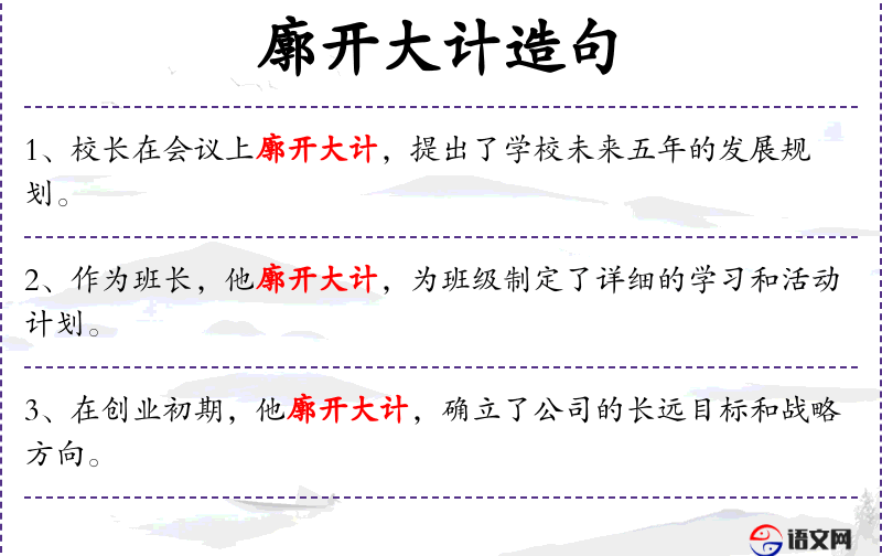 - 廓开大计:devise grand plans