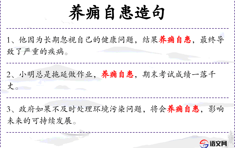 - 状语:因为长期忽视自己的健康问题,结果养痈自患