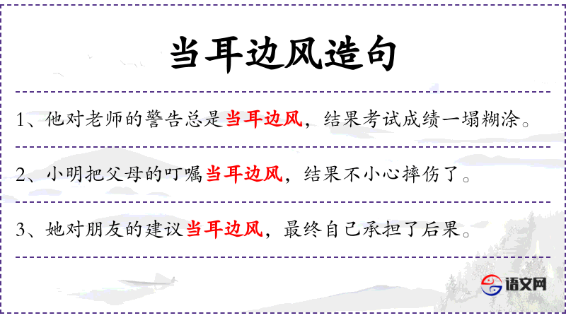 - 谓语:总是当耳边风