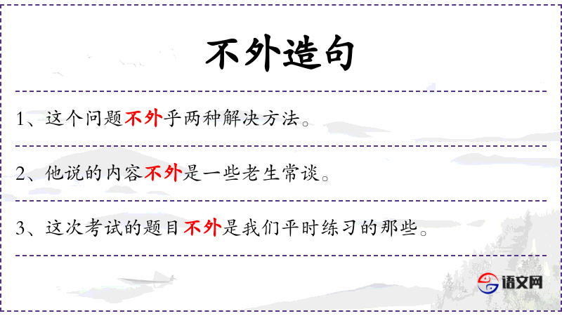 1. 【不外】 不超出某种范围以外:大家所谈论的~工作问题。也说不外乎。
