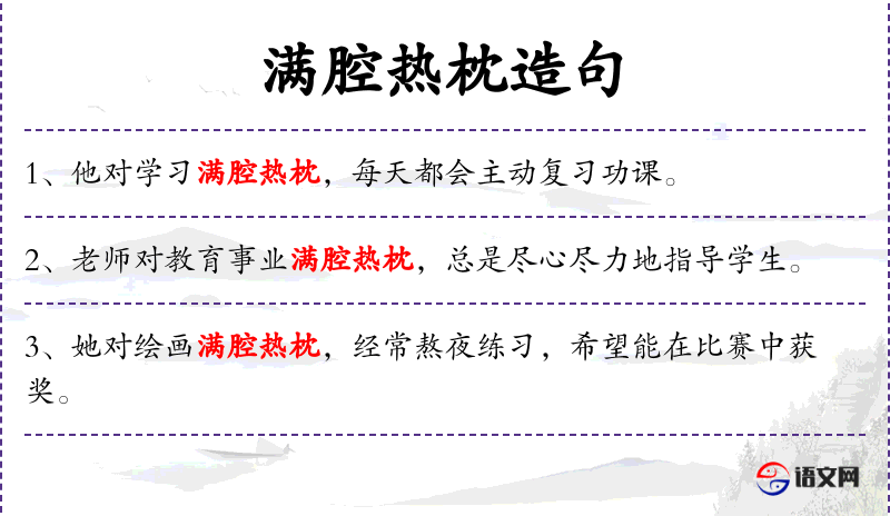 4. 【满腔热枕】 心里充满热烈真挚的感情。