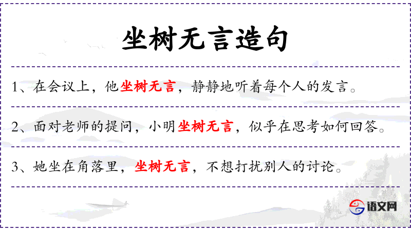 句子:“面对复杂的数学题,他坐树无言,努力寻找解题的思路。”