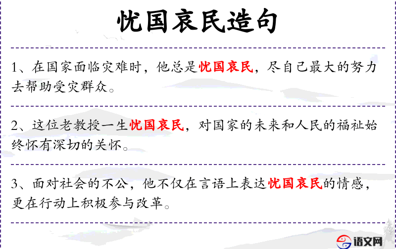 - 忧国哀民:关心国家的忧患,同情百姓的苦难。