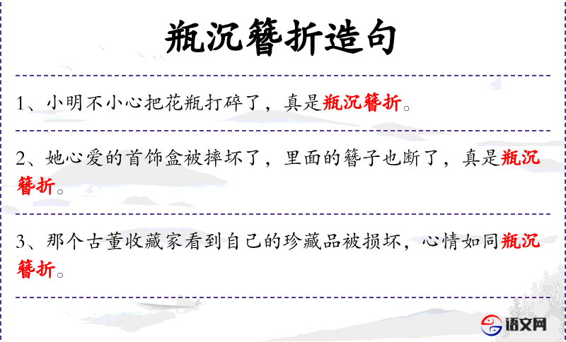 2. 【瓶沉簪折】 - 瓶沉水底难觅,簪子折断难接。比喻男女分离。