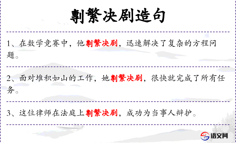 - 剸繁决剧:意为处理复杂案件,解决疑难问题。