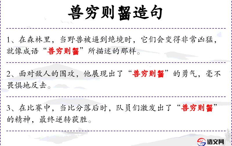 - 成语来源:“兽穷则齧”源自**古代文献,反映了古代对困境中人性的观察。