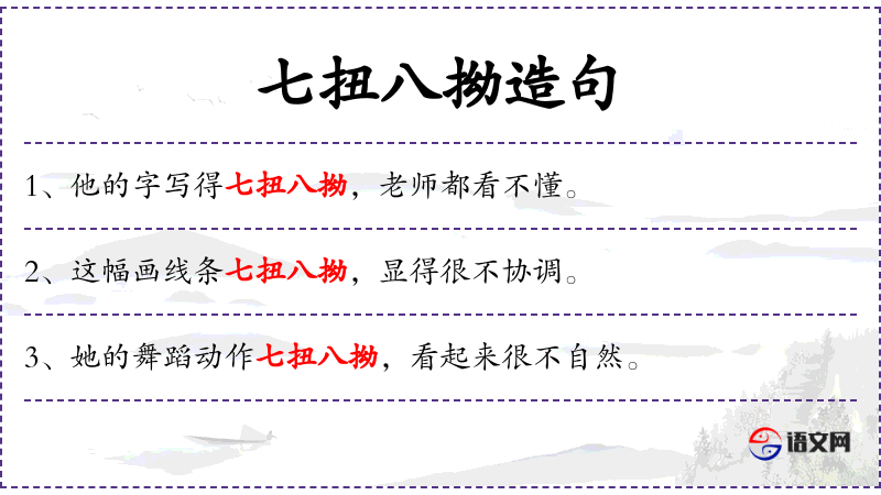 句子:“这幅画线条七扭八拗,显得很不协调。”