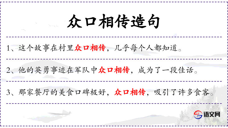 句子:“他的英勇事迹在军队中众口相传,成为了一段佳话。”