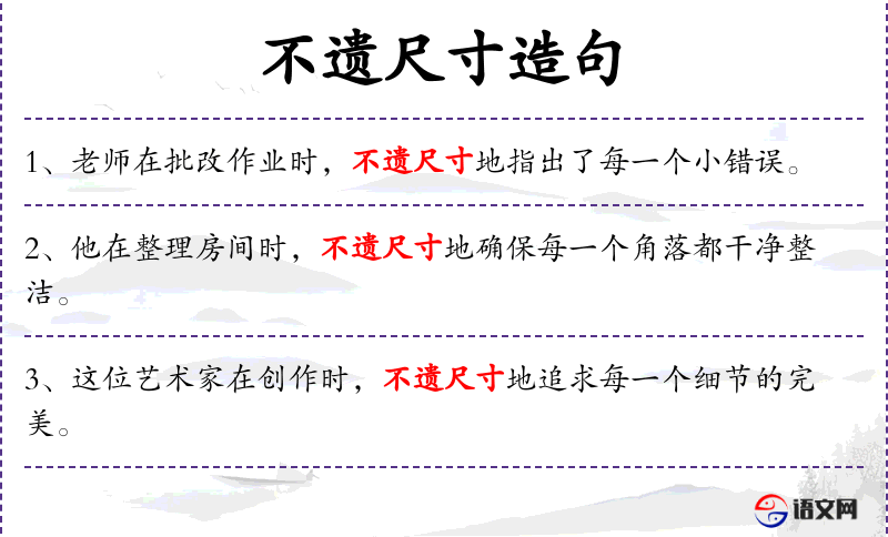2. 【不遗尺寸】 遗:遗漏;尺寸:形容数量小。比喻一点也不漏掉。