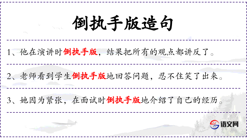- 倒执手版地:这个短语可能是误用或打字错误,正确的表达可能是“倒置地”或“错误地”。