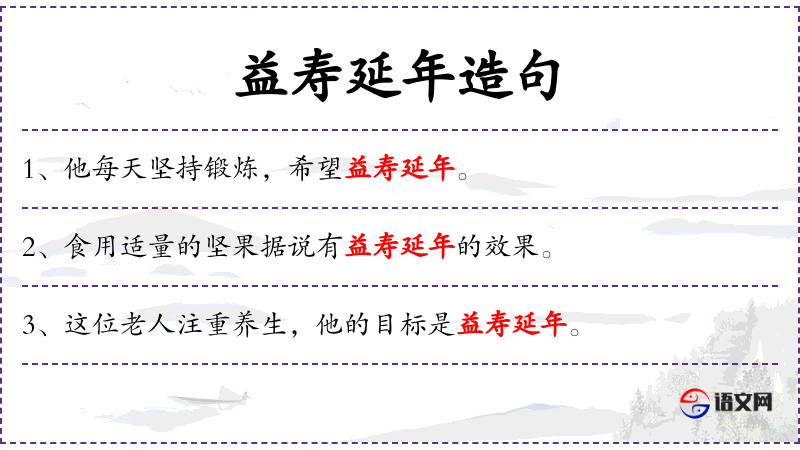 6. 【益寿延年】 增加岁数,延长寿命。多用作颂词。