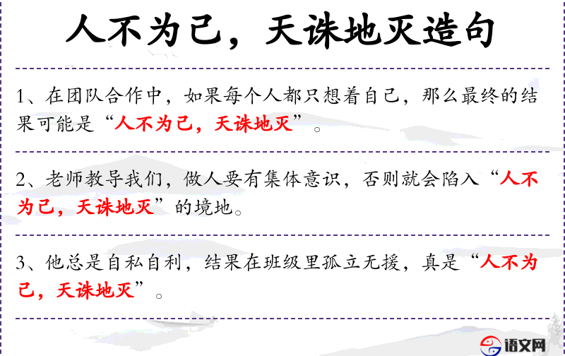 - 宾语:那些只顾自己利益的人,最终往往落得“人不为己,天诛地灭”的下场