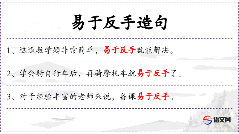 - “这首钢琴曲的反手弹奏,经过反复练习,已经变得不再困难。”