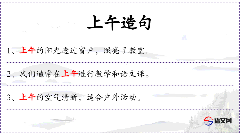 1. 【上午】 - 指半夜十二点以后至正午十二点的一段时间,一般也指清晨至正午十二点的一段时间。