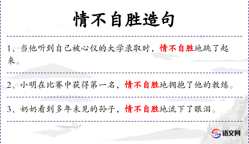 - 情不自胜:overwhelmed with emotion