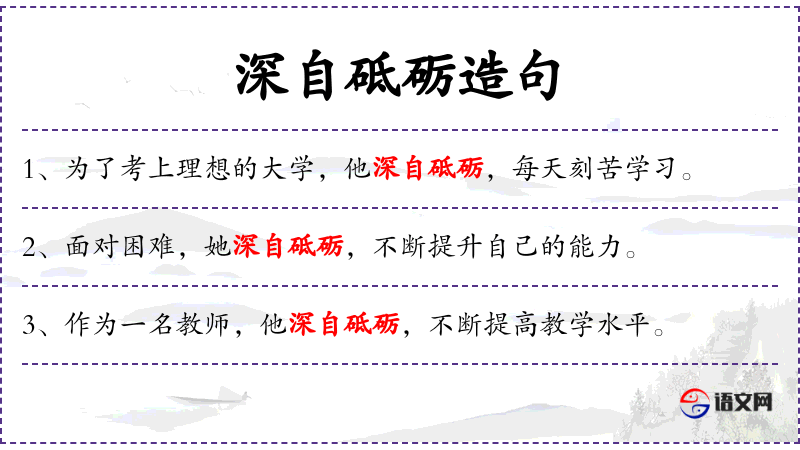 5. 【深自砥砺】 - 砥砺:磨刀石,引申为磨砺,磨炼。自己刻苦地磨炼。