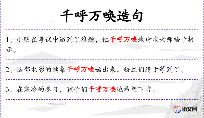 这个句子在实际交流中可能用于描述孩子们对雪的期待,或者用于比喻某种强烈的愿望。语气的变化可以通过强调“千呼万唤”来体现孩子们的迫切心情。