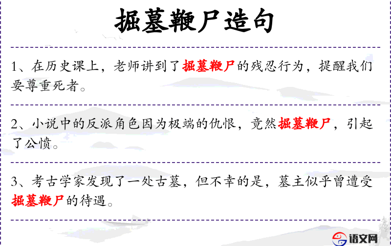 句子:“在历史课上,老师讲到了掘墓鞭尸的残忍行为,提醒我们要尊重死者。”