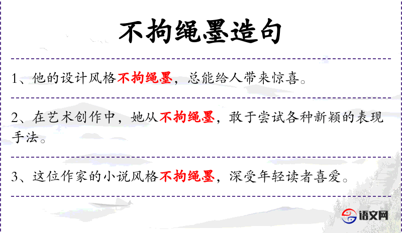 - 不拘绳墨:意为不拘泥于传统规则,有创新和自由的意思。