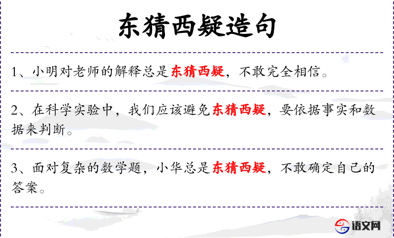 - 东猜西疑:成语,表示胡乱猜测,缺乏信任。