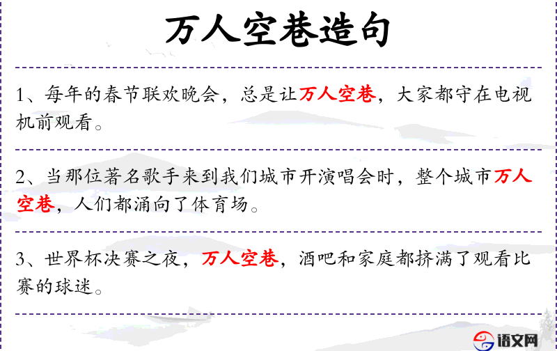 - 万人空巷:形容人非常多,以至于街道空无一人。