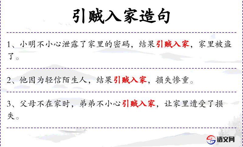 - 引贼入家:动词短语,吸引小偷进入家中。