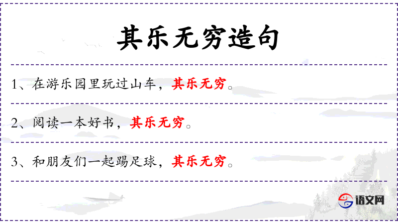 - 谓语:“其乐无穷”,这是一个主谓短语,其中“其”是代词,指代前面的“学*新技能”,“乐”是名词,“无穷”是形容词,修饰“乐”。