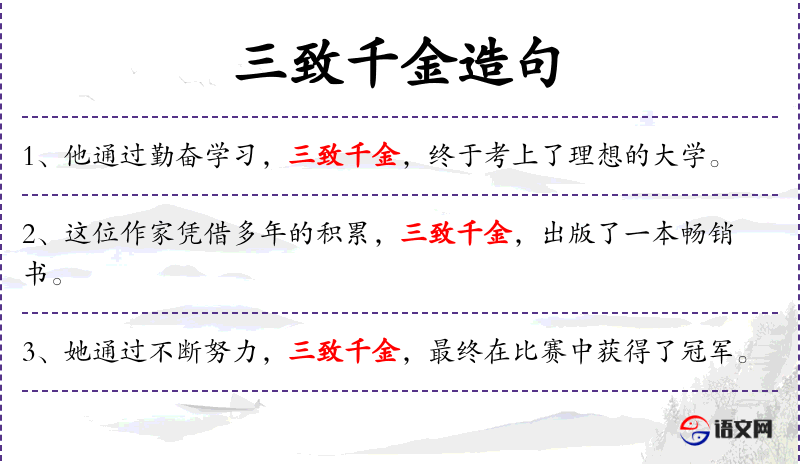 1. 【三致千金】 - 《史记.货殖列传》"﹝范蠡﹞十九年中三致千金,再分散与贫交疏昆弟。"言范蠡经商,一再家累巨万◇用为发财致富之典实。