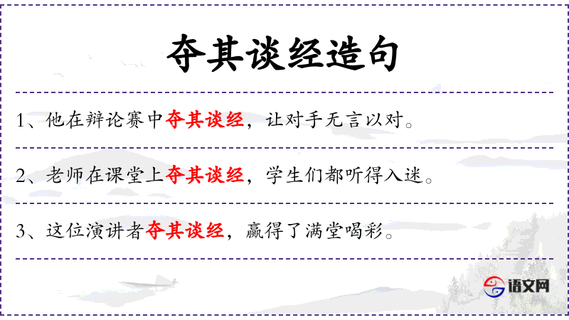 句子:“老师在课堂上夺其谈经,学生们都听得入迷。”