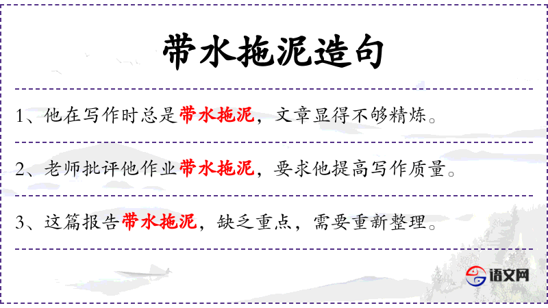 - 由于他的作业拖泥带水,老师提出了提高写作质量的要求。