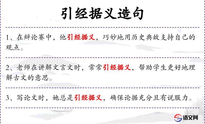 - 成语、典故:引经据义(引用经典和依据义理)。