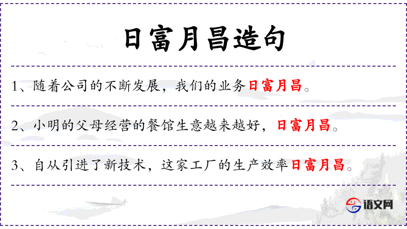 - 日富月昌:这个成语蕴含了**传统文化中对财富和繁荣的美好祝愿。