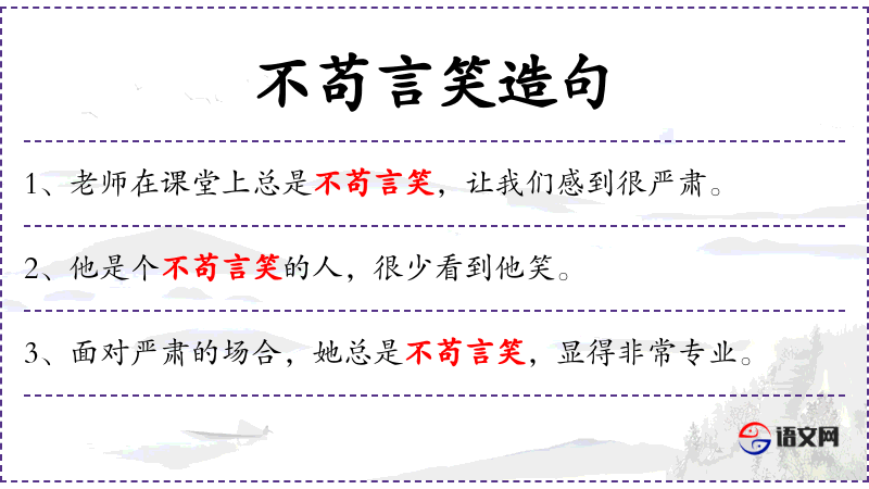 - 不苟言笑:形容人严肃,不轻易露出笑容。