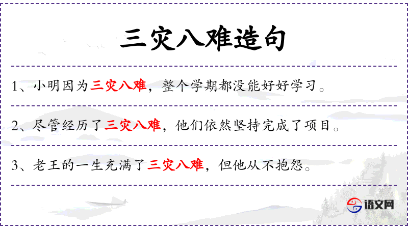 1. 【三灾八难】 比喻小孩生来多病。也形容经常遭遇不幸。