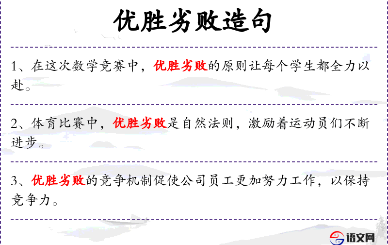 - 优胜劣败:指在竞争中获胜或失败的标准。