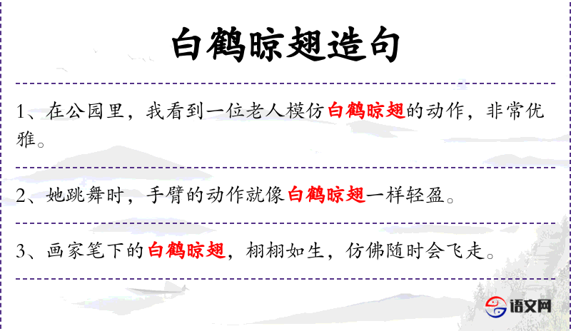 1. 【白鹤晾翅】 太极拳的一个拳式,动作像站定的白鹤张开翅膀晾着。