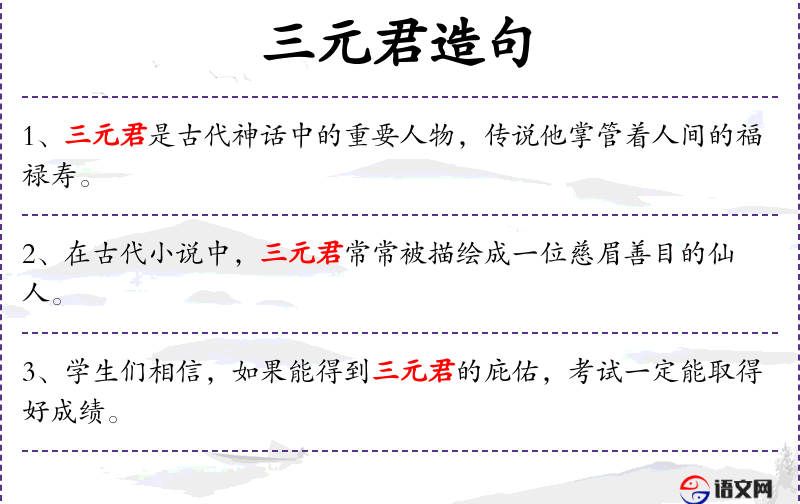2. 【三元君】 道教谓元始天尊居玉清天之三元宫,因称其为三元君。