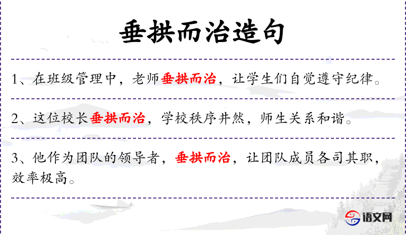 - 垂拱而治:意指班主任以温和、不强硬的方式管理班级,使得班级秩序井然。