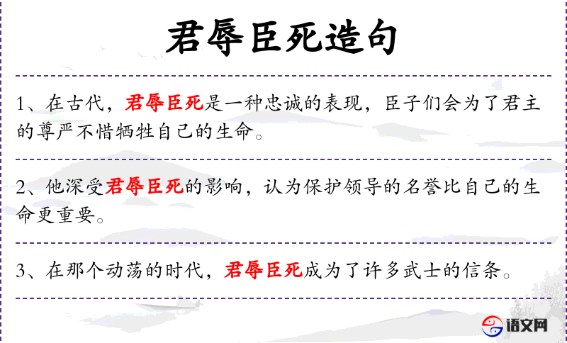 - 君辱臣死:指君主受到侮辱时,臣子愿意为之牺牲生命。