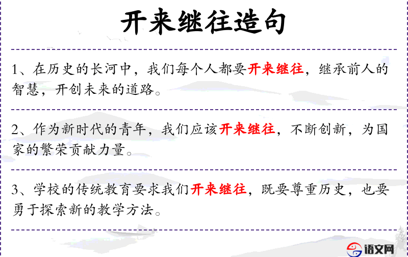 - 开来继往:这个成语源自**传统文化,强调继承和发展的结合。
