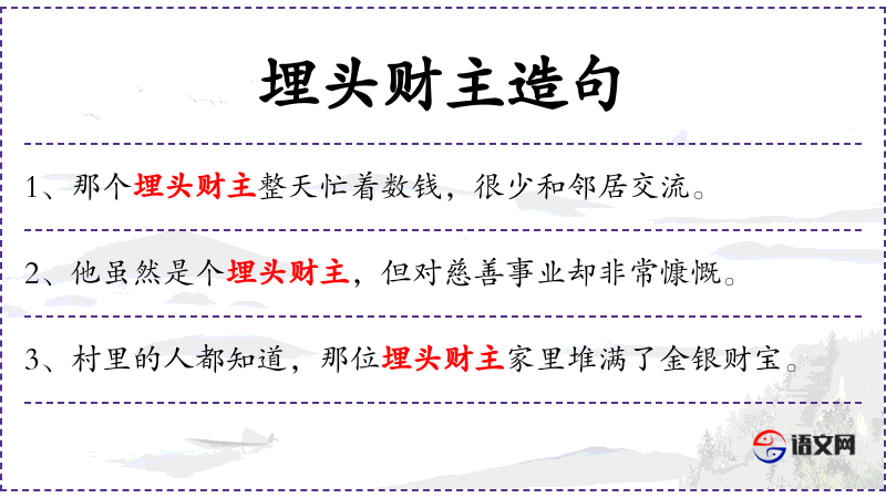 句子:“他虽然是个埋头财主,但对家人的关爱却从不吝啬。”