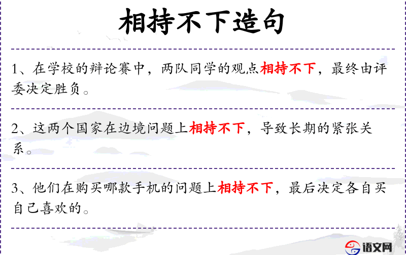 3. 【相持不下】 - 持:对抗。双方对立,彼此相持,不肯让步。