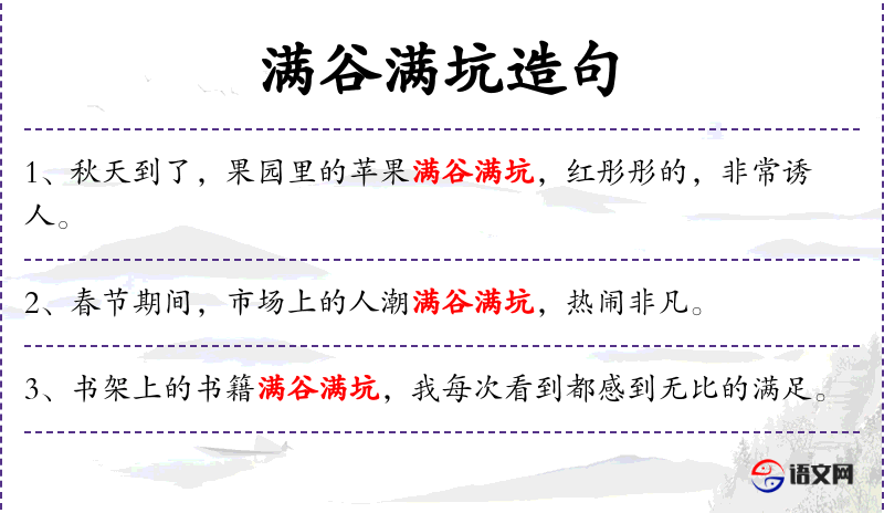 3. 【满谷满坑】 - 充满了谷,充满了坑。形容多得很,到处都是。