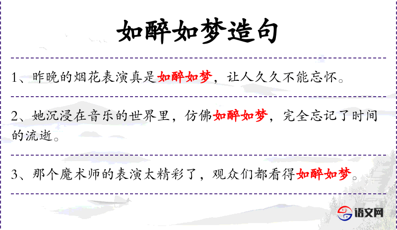 “如醉如梦”这个成语在**文化中常用来形容人陶醉于某种美好的事物中,无法自拔。这与西方文化中的“lost in a dream”或“enchanted”有相似的含义。