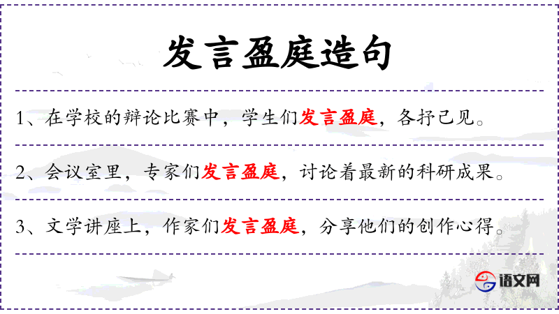 - 谓语:发言盈庭,介绍