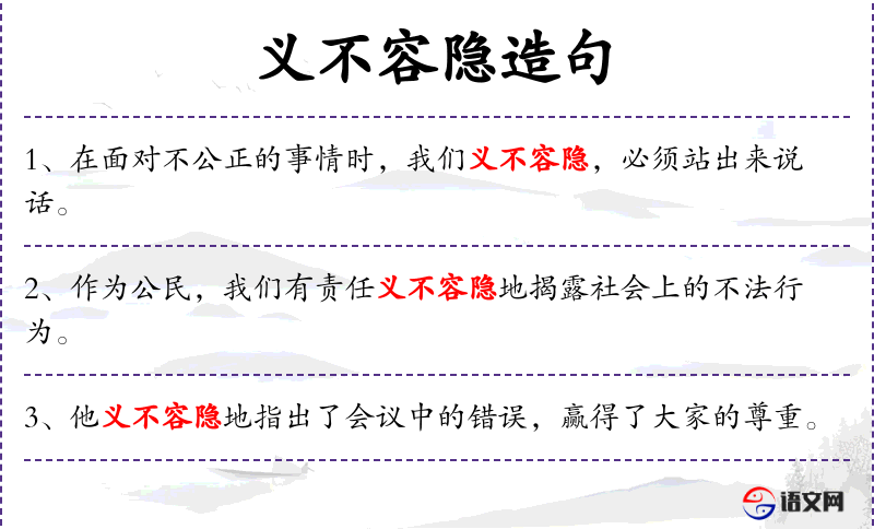 1. 【义不容隐】 隐:隐瞒。就道理上讲不应隐瞒,理应直言。
