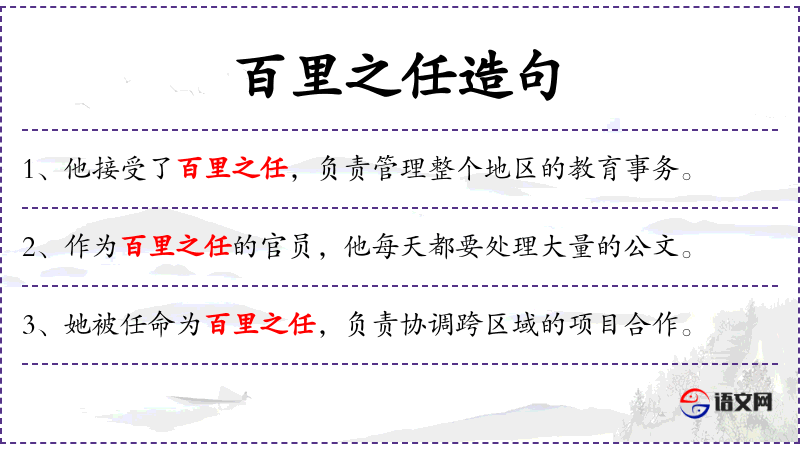 3. 【百里之任】 旧指一县的长官,如县宰、县令等。