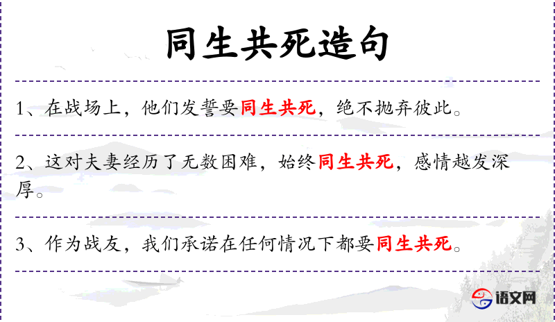 - 同生共死:成语,表示无论生死都要在一起。