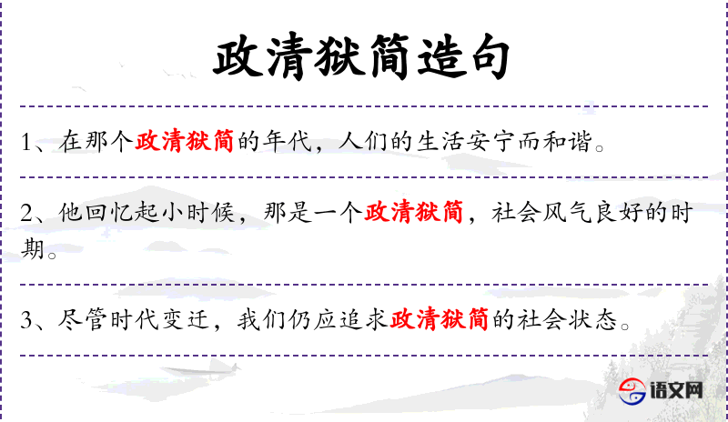- 政清狱空:政治清明,监狱空无一人,象征社会治安良好。