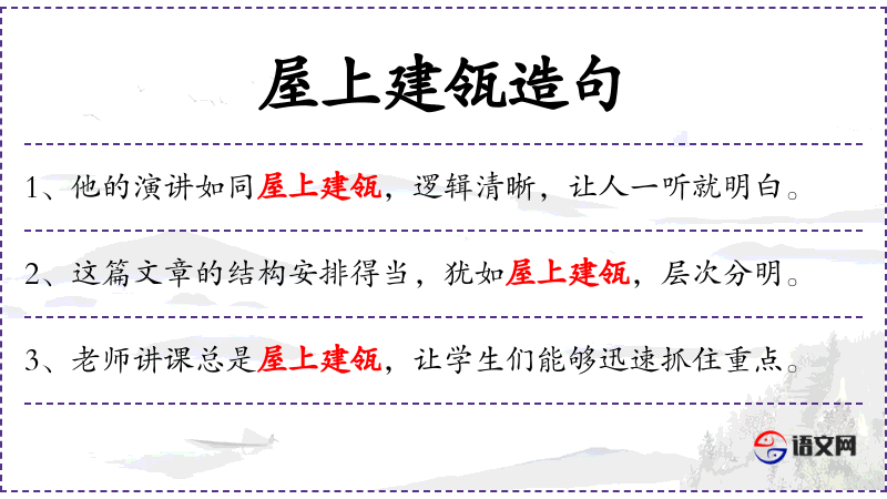 - 屋上建瓴:这个成语源自《左传·僖公二十五年》,原意是指在屋顶上建水槽,比喻高瞻远瞩。